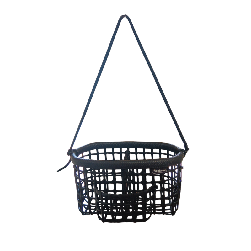La collection casier est réalisée dans la maille en polypropylène utilisée dans la fabrication des poches ostréicoles. Ces poches servent à stocker les naissains (les jeunes huîtres) pour les élever, tantôt sur l'estran, tantôt en bassin. Cette maille à casier est donc très légère et extrêmement résistante.