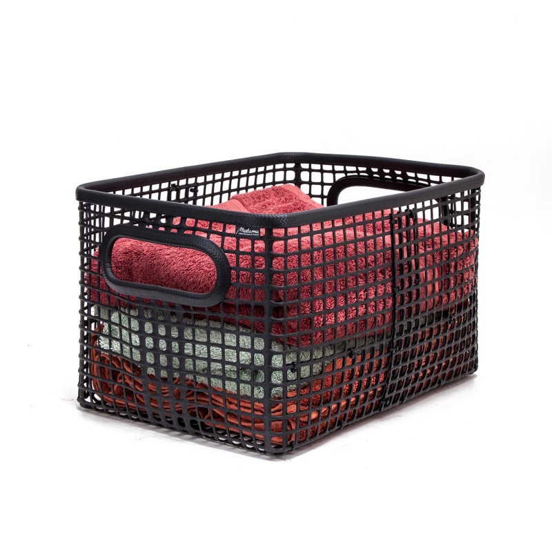 Caisse de rangement en maille ostréicole,idéal pour rangement dressing ou en décoration dans la maison. Poignées de tirage et bords PVC pour protéger tous vos vêtements, livres ou votre linge de maison- disponible sans poignées - Grand L 46 x l 31 x H 28 cm - Moyen L 39 x l 27 x H 24 cm - Petit L 33 x l 24 x H 21 cm