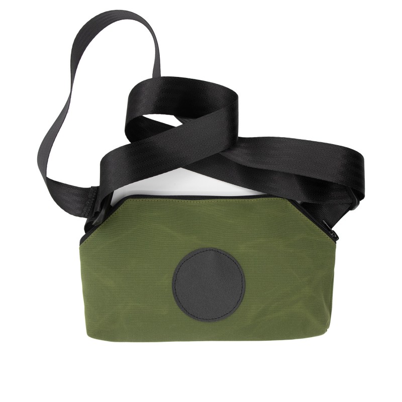 Pochette en toile marine déperlante - se porte en bandoulière comme une banane - très confortable grâce à sa large sangle, poche intérieure zippée, fermeture hermétique - Existe en format vertical. L 26cm H 15cm